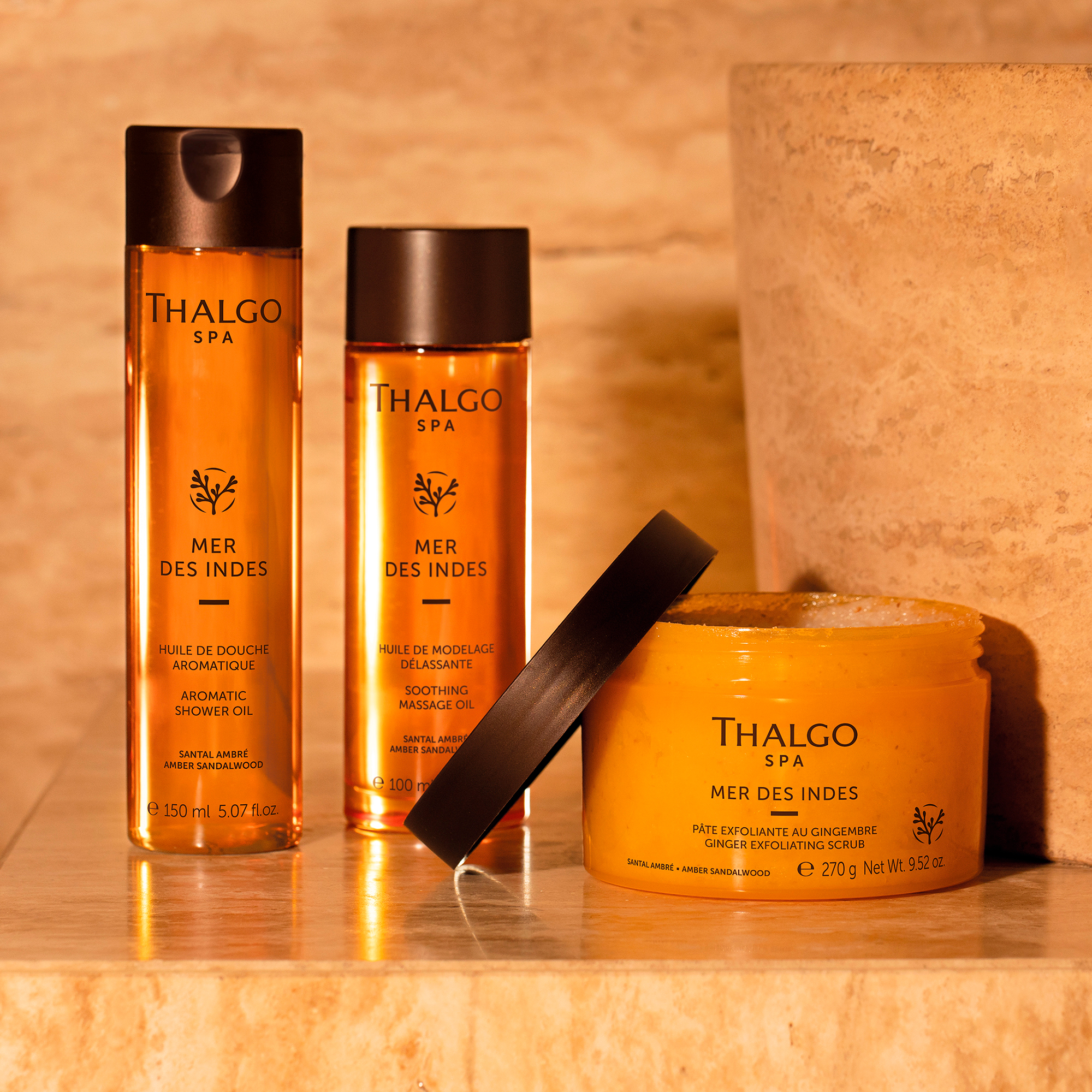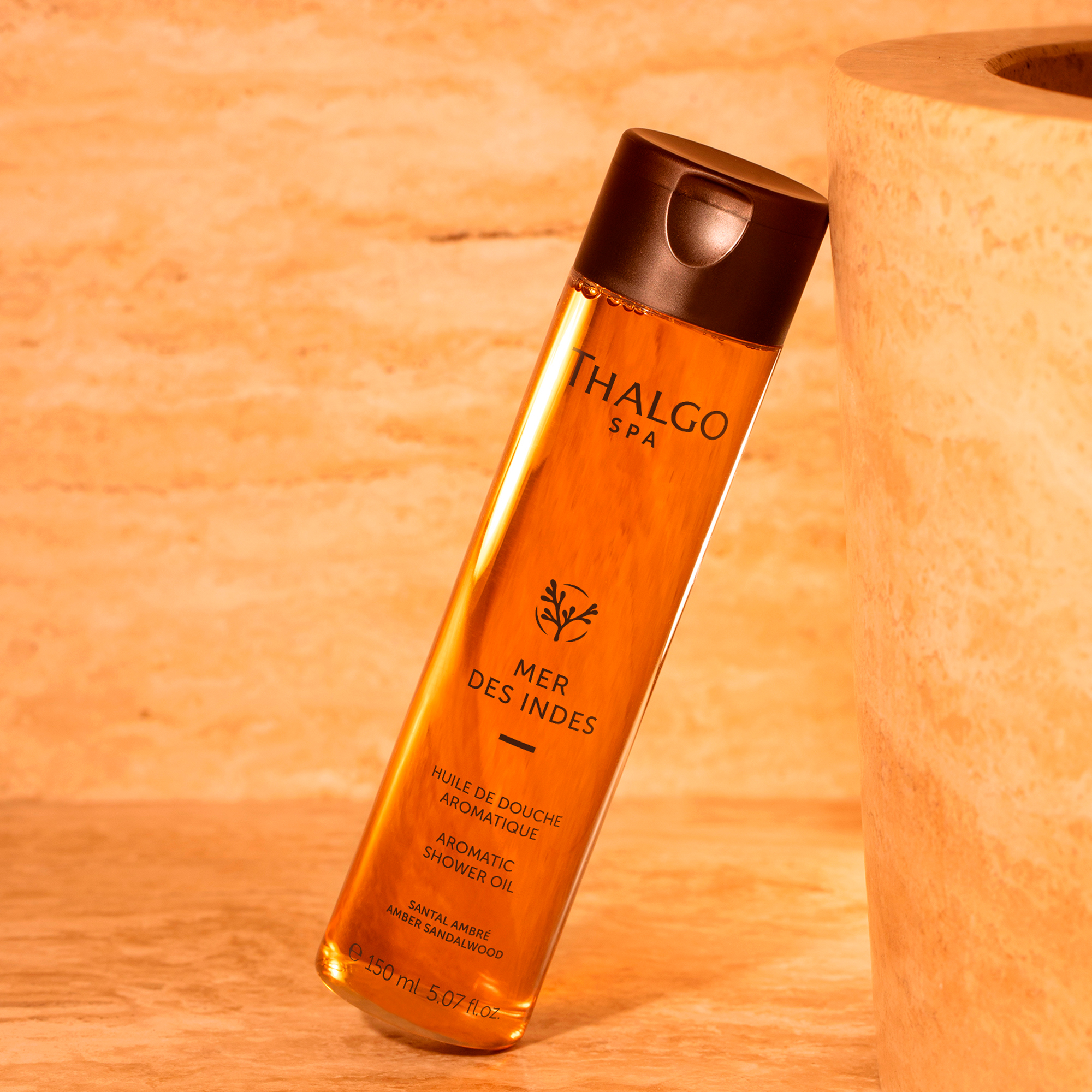 Насыщенное янтарное масло для душа содержит Гармонизирующий Морской Комплекс (Индийские красные водоросли, богатые Омега 3 и 6, аюрведические эфирные масла кориандра, кипариса и шалфея), Экстракт священного лотоса. При контакте с водой превращается в легкую приятную пену, окутывая кожу вуалью благополучия, пробуждает чувства и мягко очищает кожу.