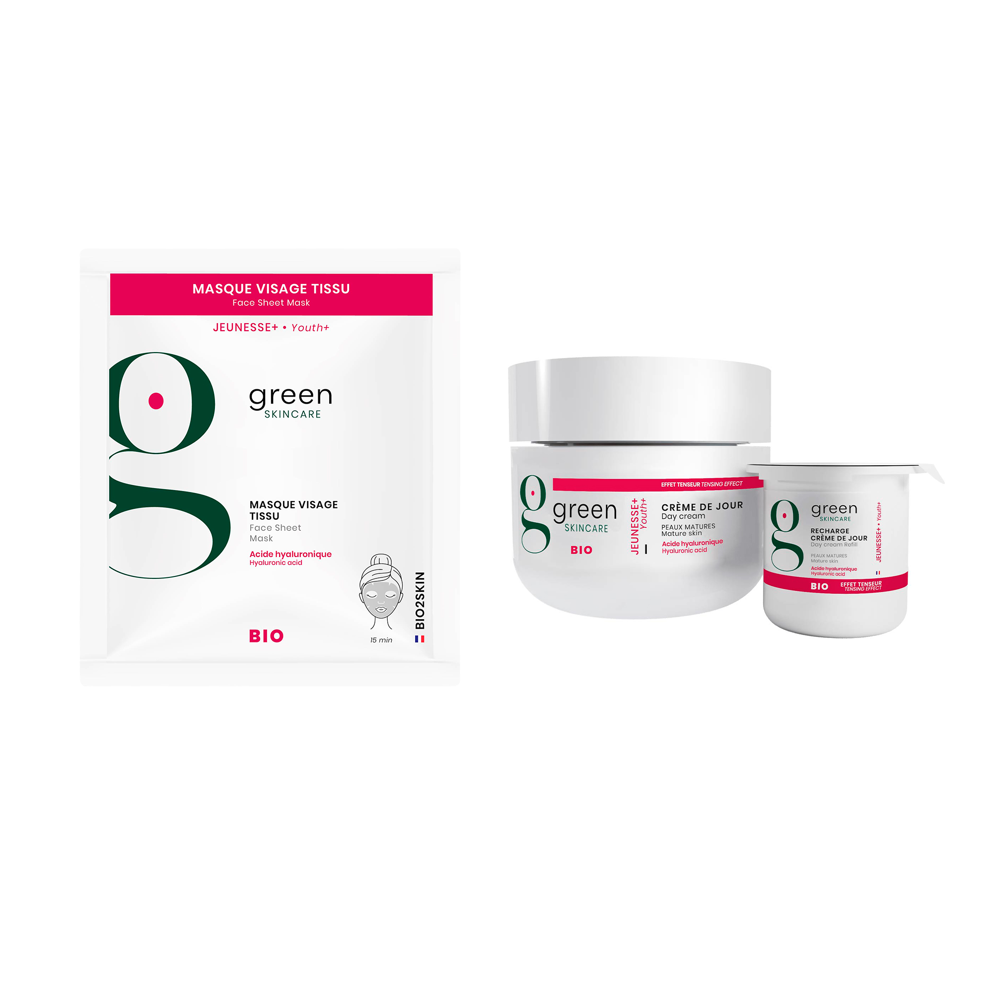 В состав набора входят два средства: YOUTH+ Дневной крем против морщин с гиалуроновой кислотой; YOUTH+ Разглаживающая органическая экспресс-маска против морщин.