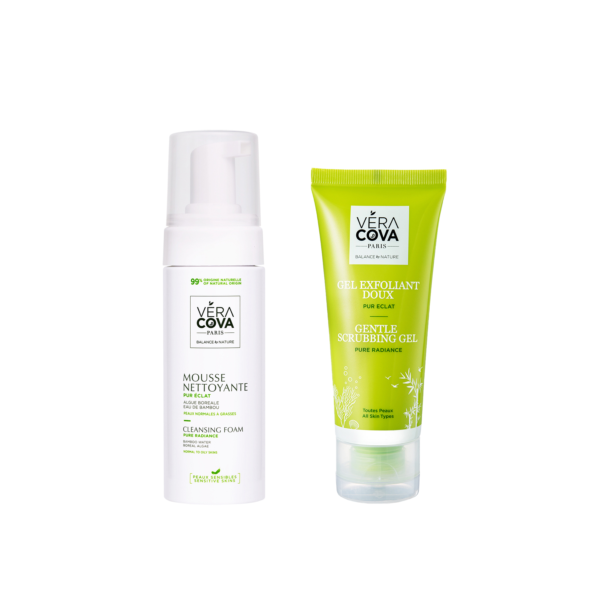 гель-эксфолиант содержит морские минералы и экстракт зелёного чая, а пенка для умывания — морские минералы и сок бамбука.