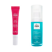 Набор сывороток включает в себя два продукта: сыворотка для контура глаз и губ с гиалуроновой кислотой и аминокислотами для коррекции морщин и интенсивная увлажняющая сыворотка с гиалуроновой кислотой и экстрактом баобаба.