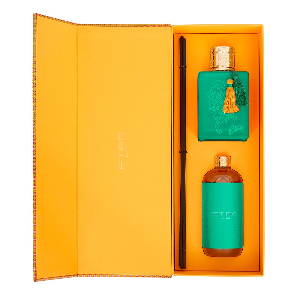 Изысканный и роскошный диффузор ETRO не только наполнит ваш дом утонченными и теплыми ароматами, но и расставит яркие акценты в домашнем интерьере благодаря элегантному глубоко зеленому стеклянному флакону с орнаментом Пейсли. Флакон GALATEA глубокого зеленого цвета. Характеризуется уникальным цветочным ароматом.