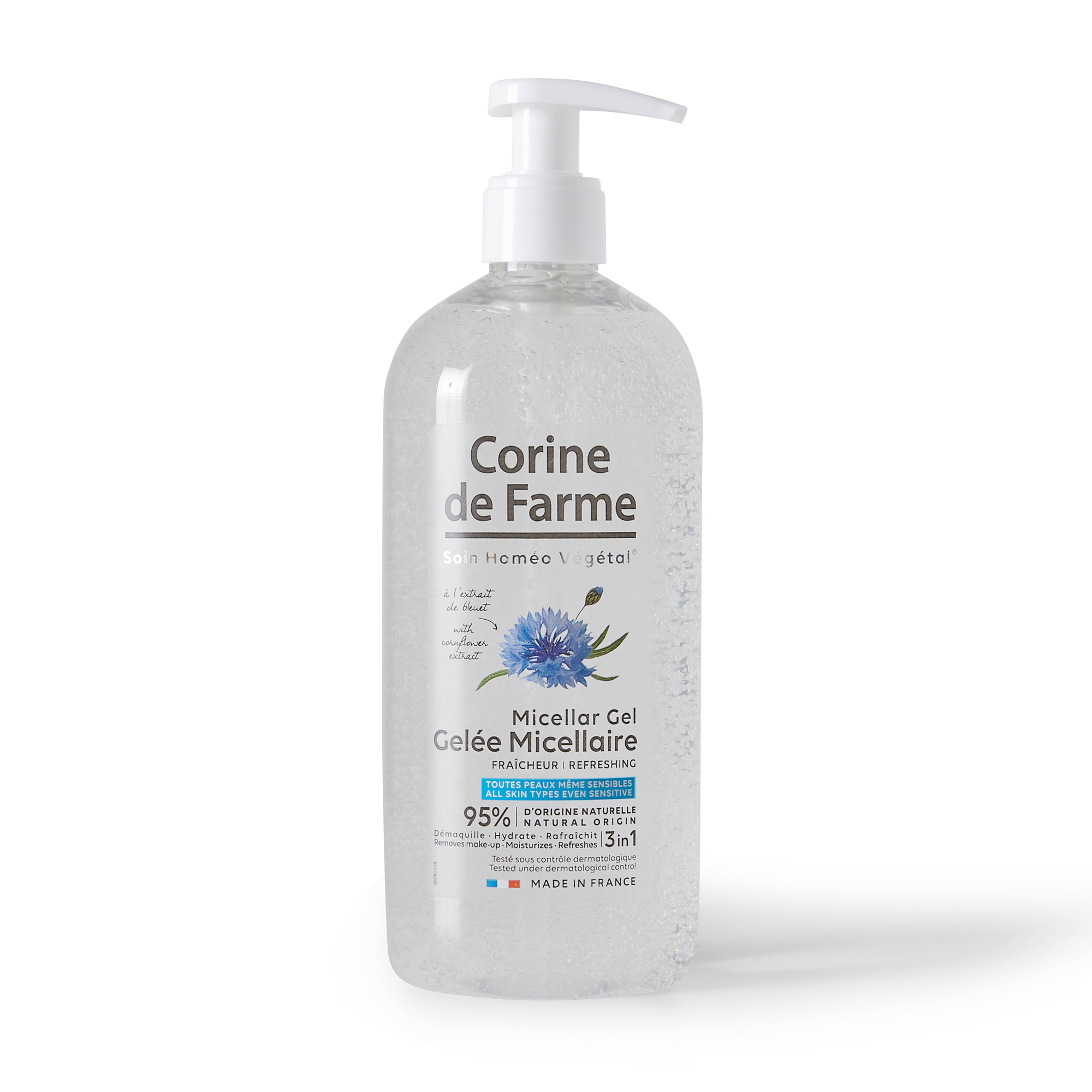 Очищающий мицеллярный гель - ваш идеальный выбор для бережного ухода. Этот продукт создан с использованием передовых технологий и натуральных компонентов, чтобы обеспечить вашей коже максимальный уход и комфорт. Основные преимущества: - Эффективное очищение: Мицеллярная структура геля позволяет эффективно снимать макияж и очищать кожу лица, глаз и губ. - Легкая текстура с пузырьками воздуха делает процесс очищения приятным и нежным. - Универсальность: Подходит для всех типов кожи, обеспечивая мягкое и деликатное очищение. - Освежающий и тонизирующий эффект помогает улучшить общее состояние кожи. - Натуральные компоненты: В состав геля входят экстракты василька и гибискуса. Василёк известен своими успокаивающими и противовоспалительными свойствами, а гибискус – тонизирующими эффектами. - 95% ингредиентов имеют натуральное происхождение, что минимизирует риск аллергических реакций. - Безопасность и гипоаллергенность: Продукт не содержит парабенов и красителей, что делает его безопасным для чувствительной кожи. Разработан под фармацевтическим контролем и прошел дерматологические испытания, подтверждая свою безопасность и эффективность. - Эксклюзивная концепция Homéo-beauté végétale: Эта уникальная линия ухода за кожей от Corine de Farme основана на использовании тщательно отобранных и очищенных растений и цветов. Растительная гомеопатия позволяет обогатить кожу натуральными активными компонентами, улучшая её состояние и внешний вид. Как использовать: Нанесите небольшое количество геля на влажную кожу лица. Легко помассируйте кожу круговыми движениями. Тщательно смойте теплой водой. Используйте ежедневно для поддержания чистоты и здоровья кожи. Результат: После применения мицеллярного геля ваша кожа будет очищена, освежена и подготовлена к дальнейшим этапам ухода. Натуральные компоненты помогут сохранить её здоровой, гладкой и сияющей. Свернуть текст.