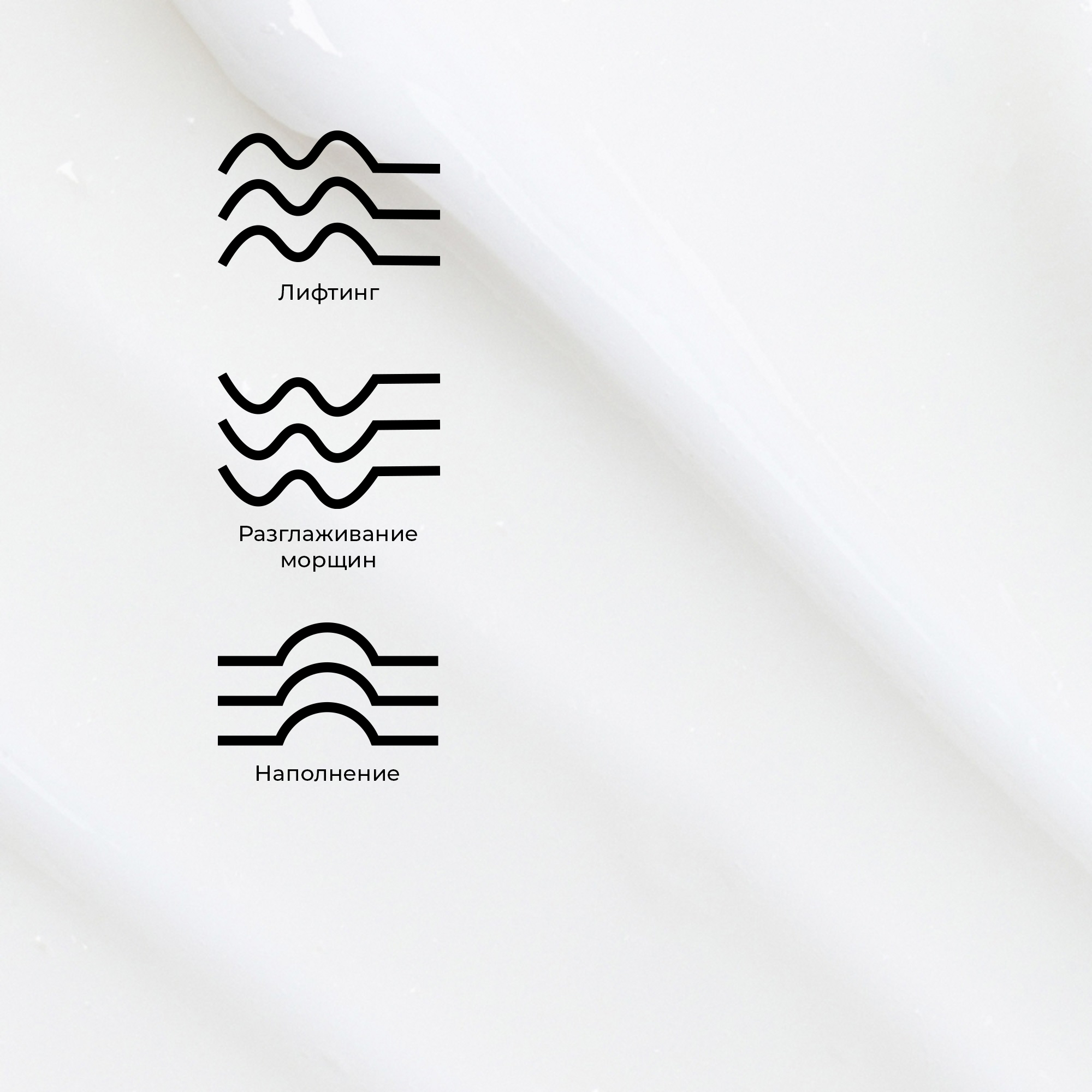Мгновенно заполняет морщины, создает эффект естественно наполненной кожи, повышает упругость и оказывает лифтинг-эффект.
