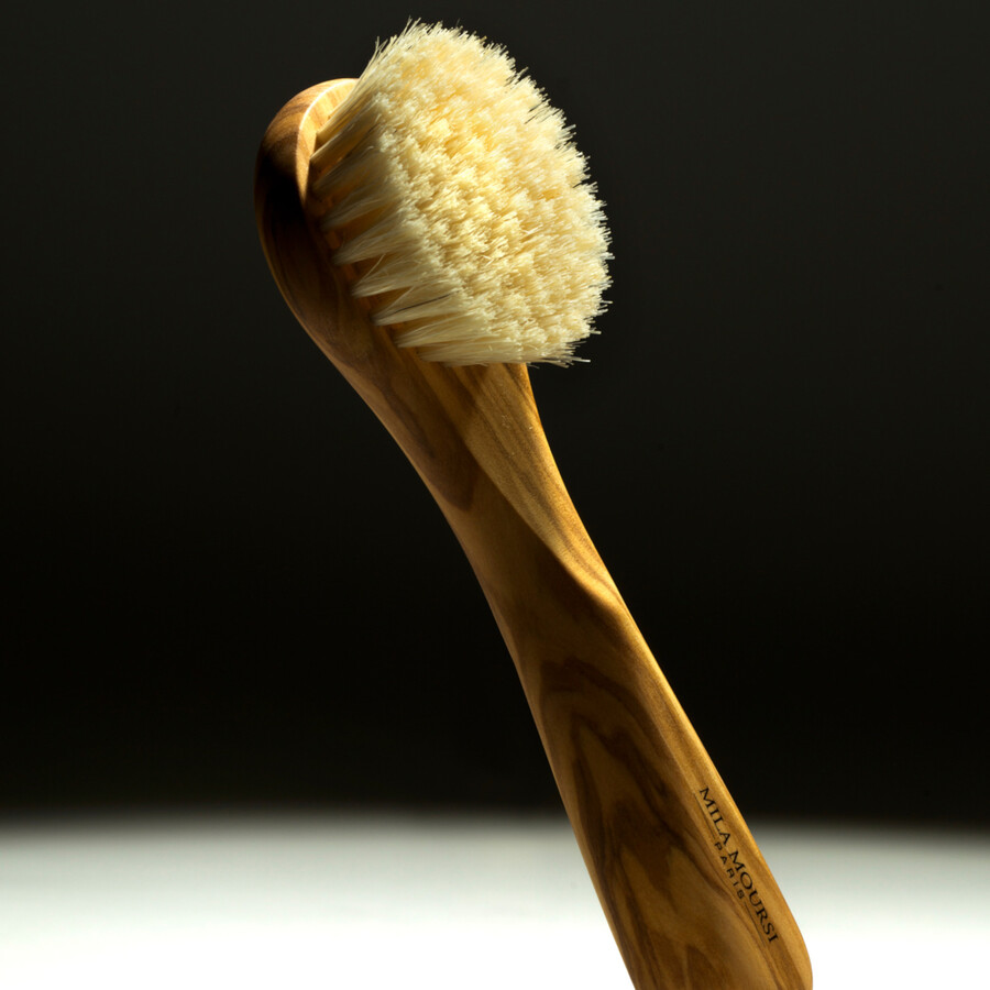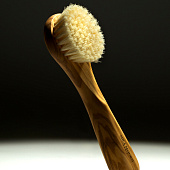 Ускоряя обменные процессы, щетка с упругой натуральной щетиной заметно улучшает цвет лица, помогает устранить застой лимфы и снять отечность. Поглаживающие круговые движения тонизируют кожу и увеличивают эффективность последующих этапов домашнего ухода. Рекомендуем начинать сухой массаж с зоны декольте и шеи, а затем постепенно подниматься вверх, избегая области вокруг глаз.